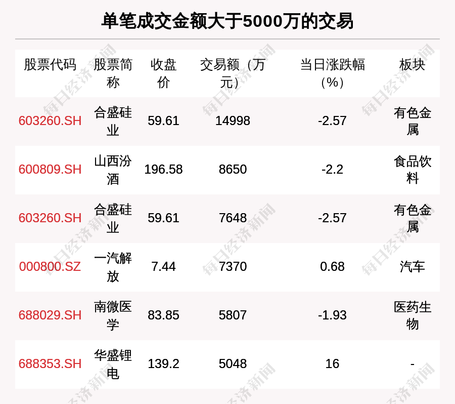 每經(jīng)AI快訊,2025年11月14日,滬深兩市一共發(fā)生190筆大宗交易,共成交19.71億元,涉及66家上市公司。