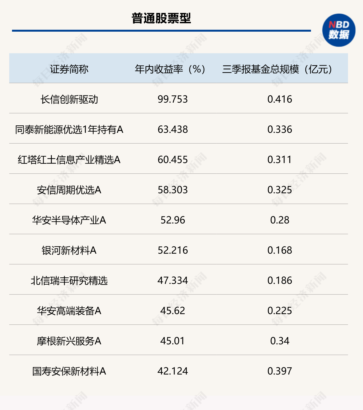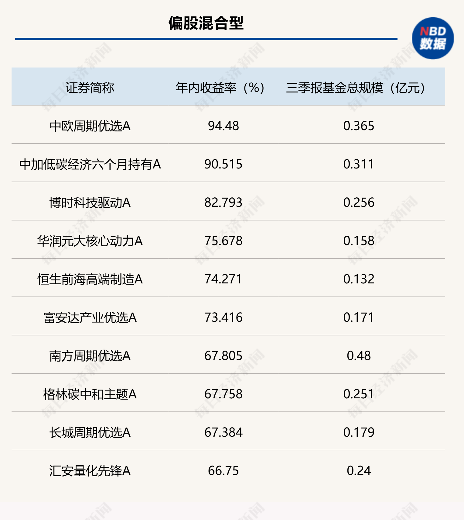 部分年內績優(yōu)主動權益類基金三季度末總規(guī)模低于5000萬產品(數(shù)據來源:Wind)