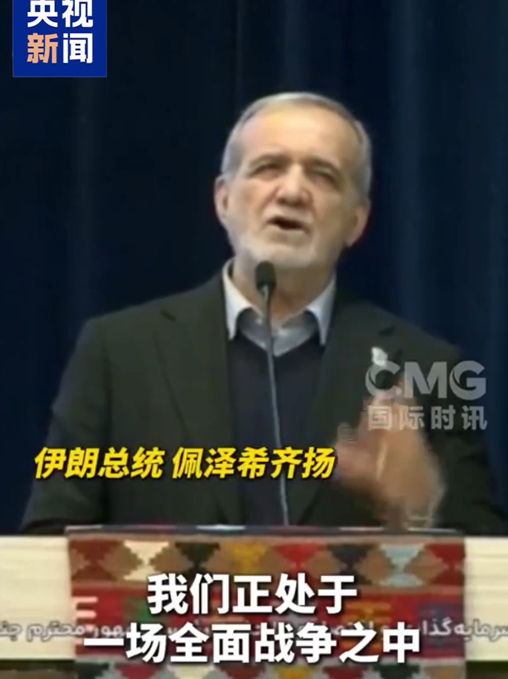 據(jù)央視新聞,伊朗總統(tǒng)佩澤希齊揚當?shù)貢r間2025年12月31日在伊朗中部城市發(fā)表講話說,伊朗正處于一場全面戰(zhàn)爭之中,敵人企圖通過經(jīng)濟手段施壓擊垮伊朗,但只要伊朗人民意志堅定、團結一心,就不可能讓伊朗屈服。