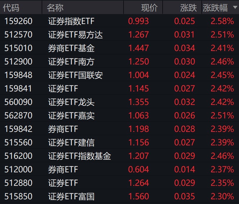 受盤面影響,證券相關(guān)ETF漲超2%。